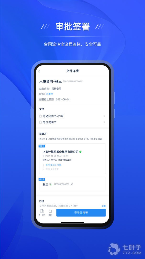 2、由上海亘岩网络科技有限公司开发,契约锁电子签约APP为用户提供安全、智能、便捷的移动端电子化签约服务