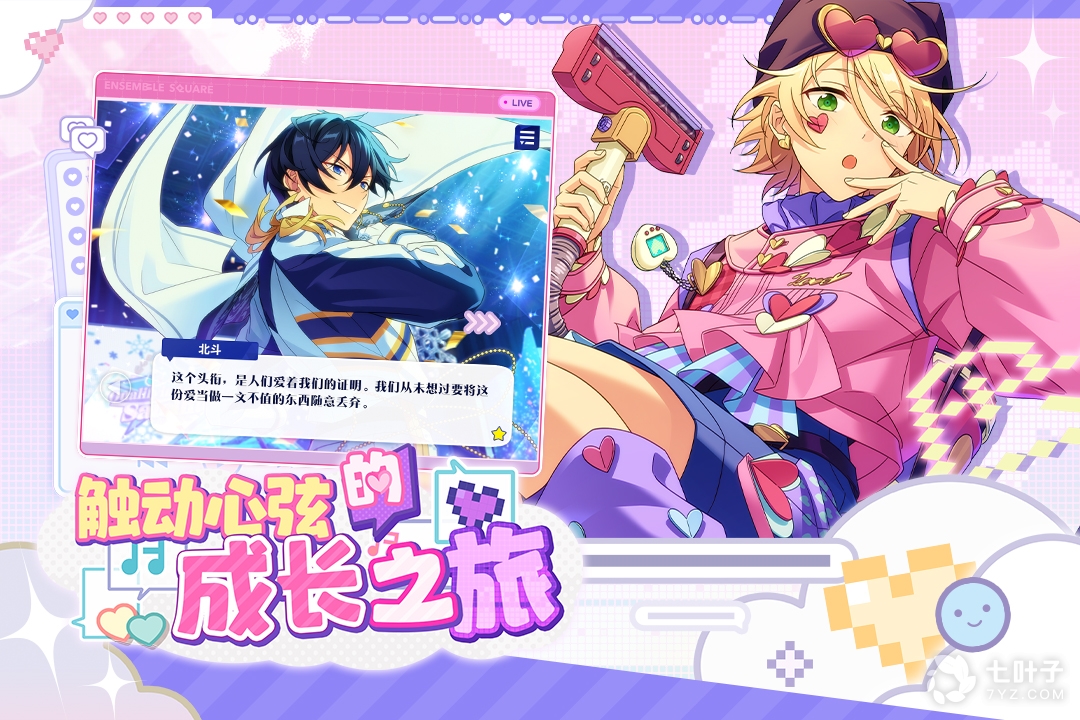 2、偶像梦幻祭2由ES推出的女性向偶像养成游戏,这里有不同的男神等待玩家攻略,以青春偶像高校生为主题,让你一秒唤起美好的校园记忆,游戏简单易上手的操作中以及多元化的游戏玩法让玩家更加沉浸在游戏的世界中,帮助你打发无聊的休闲时光,这一次将会给你更生动的玩法