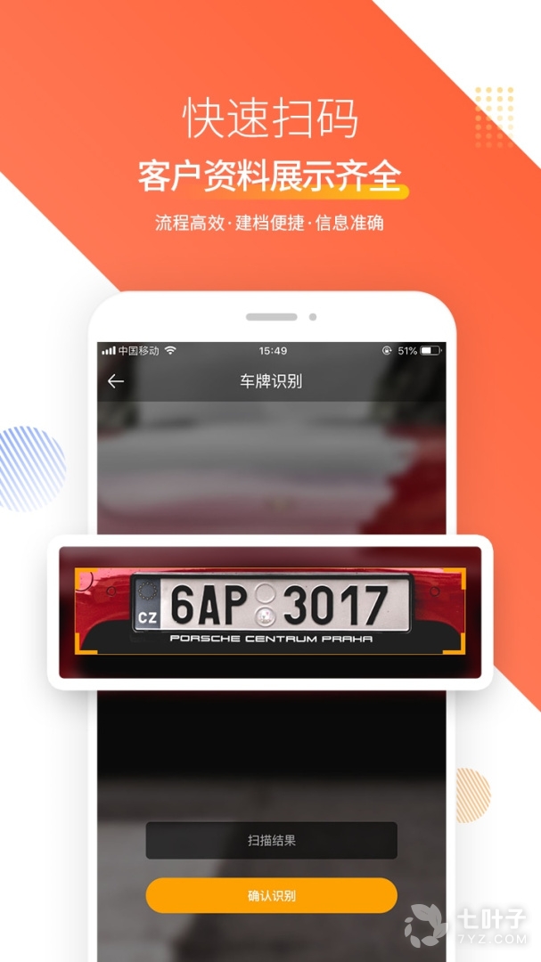3、扫描功能:支持车牌、车架号、驾照、驾照和身份证的扫描,简化店铺日常数据录入流程,使客户备案方便准确