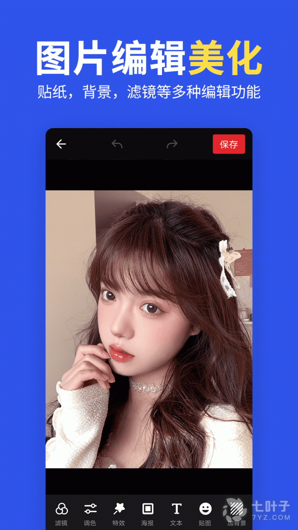4、而且用户们还可以通过这款软件来来对图片进行贴纸、涂鸦等操作,让用户们可以按照自己的想法来给图片添加许多的创意