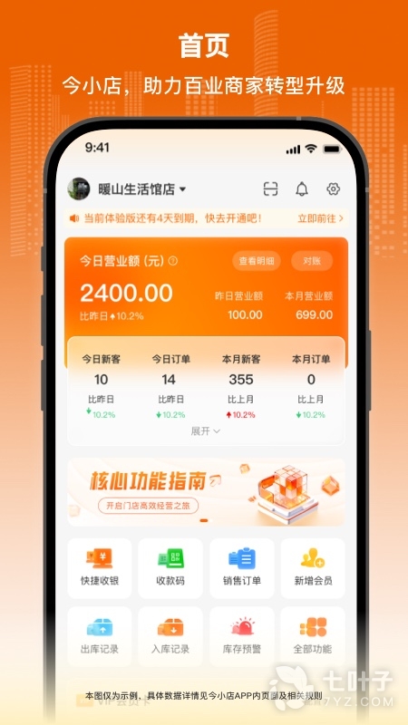 2、今小店旨在为广大开店的商家用户们提供更为便利的店铺经营服务,为商家用户们提供详细的营收报表数据,并且可以帮助商家用户结转每年的利润。它还涵盖了店铺管理的各个方面,从数据分析到多渠道管理,从会员营销到客服服务,从数据报表到灵活定制,都能够满足商家的不同需求和期望,实现店铺的优化和提升