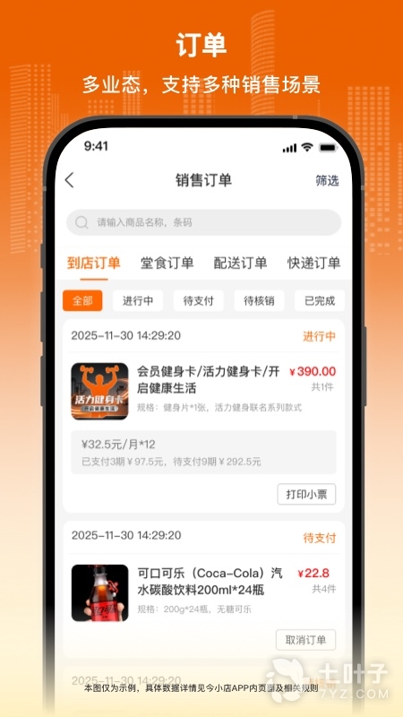 2、清晰显示收支、订购情况,让商家投入更少时间和精力处理订单问题。