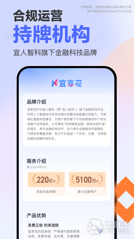 宜享花是一款高额度、低利息、无抵押的信用贷款产品。