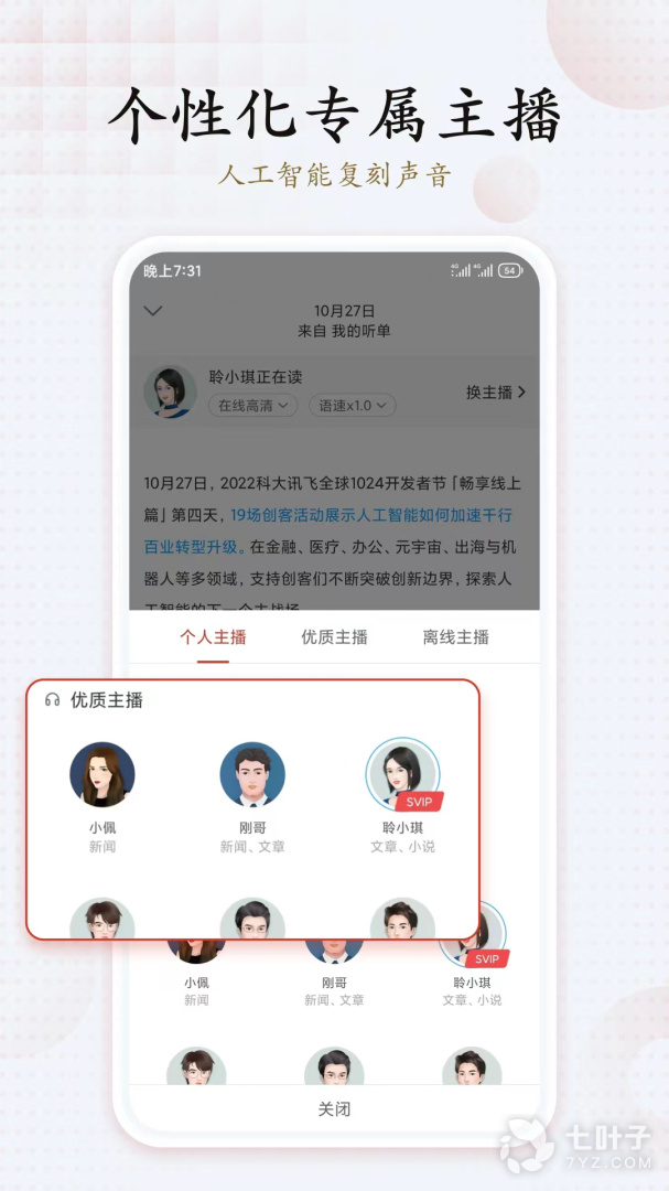 3、还在担心听文章耗流量?不用怕,选择离线主播,没网也能听哦