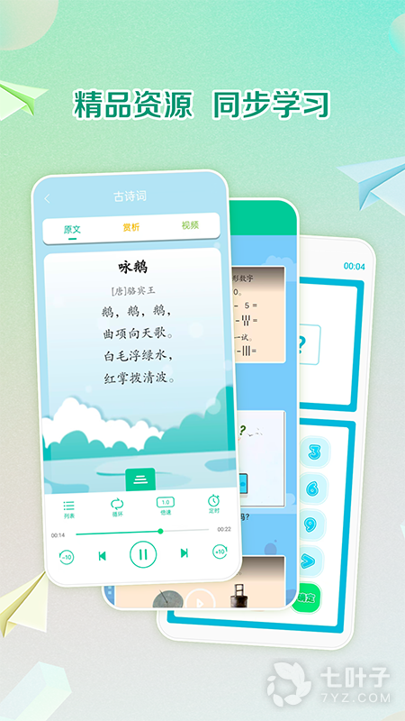 2、而且主要是三门语数外主流学科的点读。教材和音频课程更加的同步