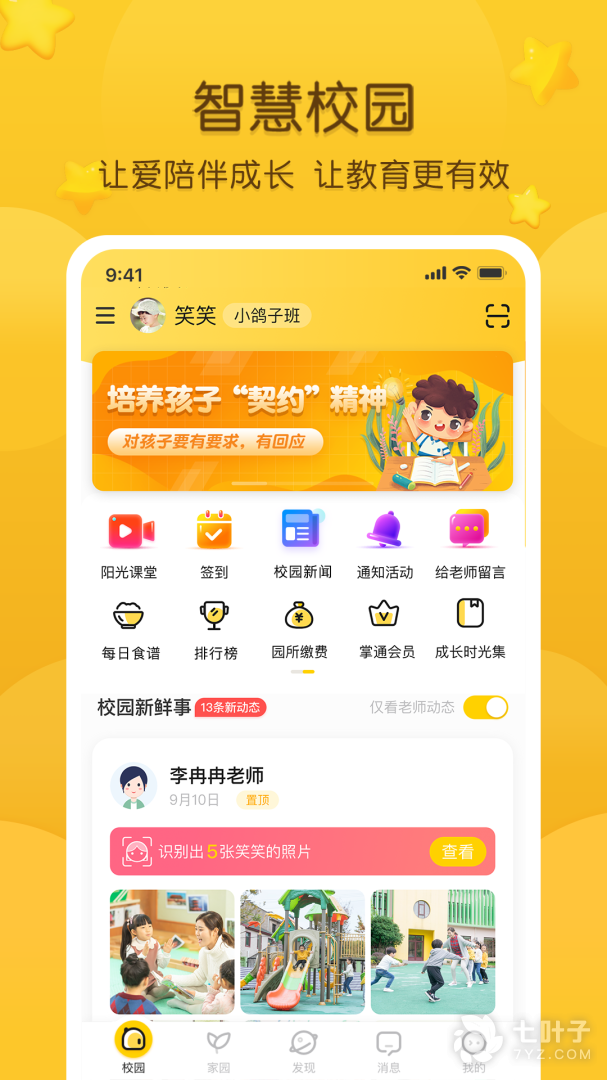 3、班级圈内容是由孩子所在班级的任课老师发布,家长可以刷班级圈,点赞、评论,跟老师和其他家长生动交流