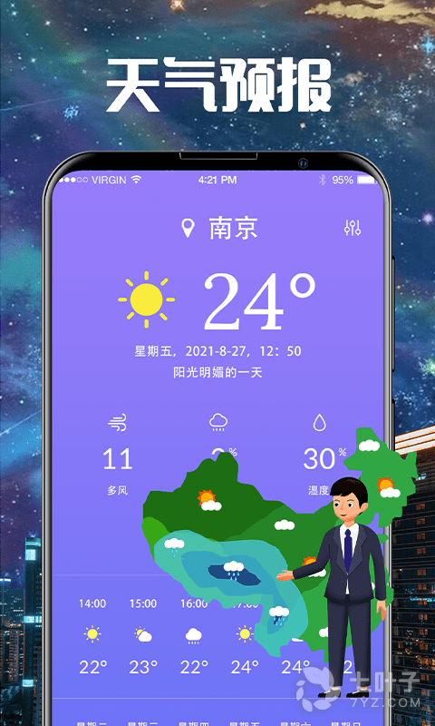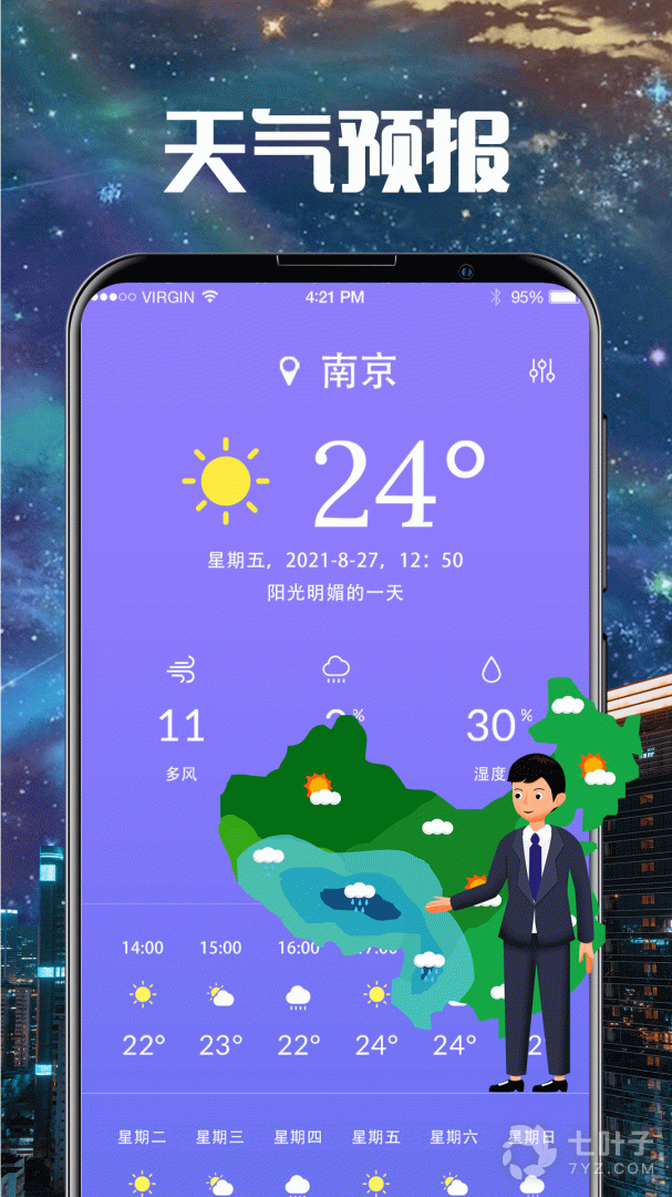 2、卫星云图,用户可以在实时卫星云图中看到最新的云图动态,一键定位就可以看到头顶这片天空的变换了,还有天气预报等功能也很实用