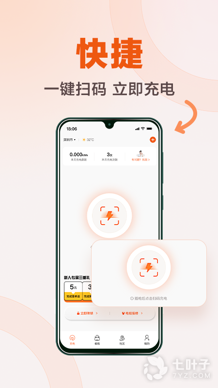 4、直接使用该软件扫码充电,便捷快速,无需其他验证信息,即可进入充电阶段