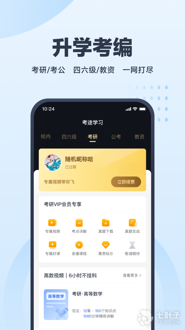 考途——考路难走,征途有我。考途侧重于大学生在校园学习和考研、公考、考证书方面的能力提升。中国在线教育公司高途旗下的大学生学习辅助工具,帮助学生提高学习效率,更好地掌握知识。