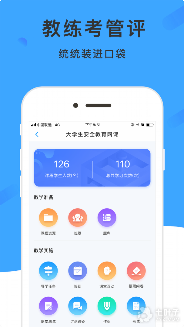 2)全功能:完备的教学功能,包括教、学、练、考、管、评及学习行为数据分析工具。