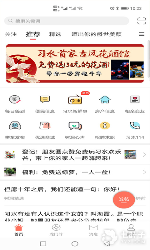 习水生活网中你可以在这里找到大量有趣好玩的事,还能进入社区中发布帖子,与其他网友进行互动,充实自己的生活,从此告别孤单;同时还能在曝光台中,将自己生活中身边的报料发布出去,让更多网友知晓,好人好事提前知道,还能结交更多趣味相投的朋友伙伴;除此之外,在热门推荐榜中,你可以查看24小时之内、本周、本月的动态内容,评论、点赞、收藏、分享等一网打尽,给你不一样的生活体验。