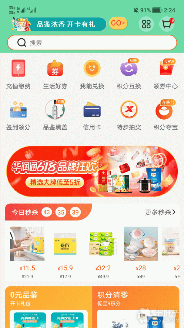 2、9积分兑礼,每天秒杀抢兑,注册乐花卡满100减50,通享卡12大权益!