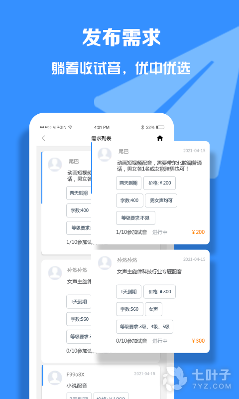 【发布需求】无需等待,发布需求,配音员主动提交试音。