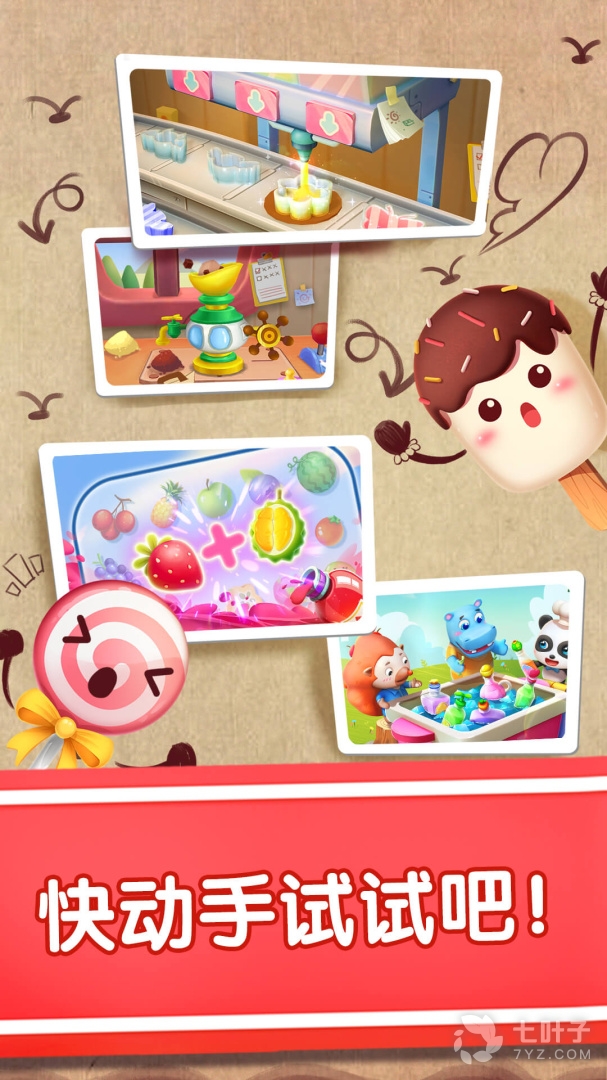 这是一款由宝宝巴士出品的儿童休闲类手游。游戏画风卡通,玩法简单有趣。宝宝可以选择不同的水果,操作炫酷的制作机器,制作出各种美味的冰淇淋,还可以DIY出可爱的装饰。还不快来做个冰淇淋解解暑?