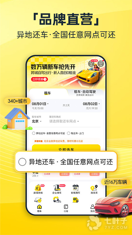 2、全国66余城市,500多个网点,70多款车型,任您选择