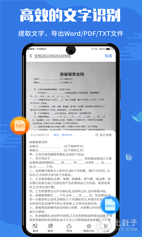 3、扫描各种文件、图片、纸质文字,精确提取想要的文字,并且生成可编辑的文本进行修改,分享