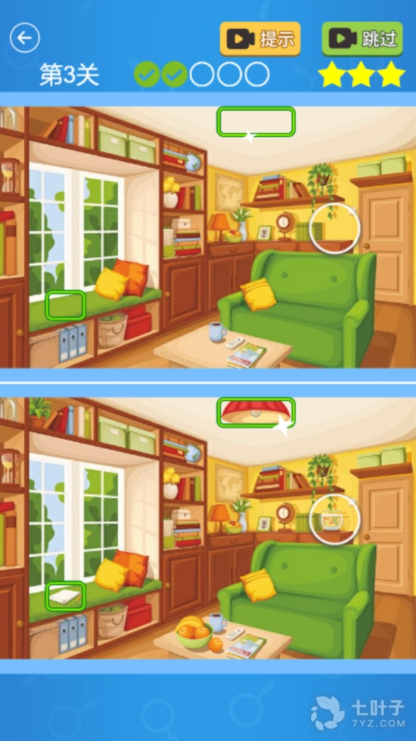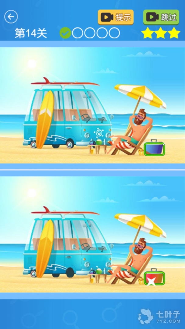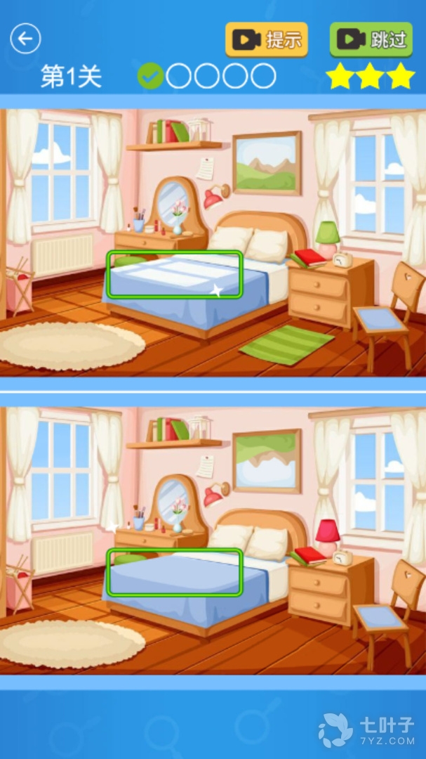 1、游戏的目标就是要求玩家在指定的时间内容找出两张近似图片中的全部不同点,用时越早得到的钻石奖励就越高。还可以使用各种道具帮助你轻松游戏