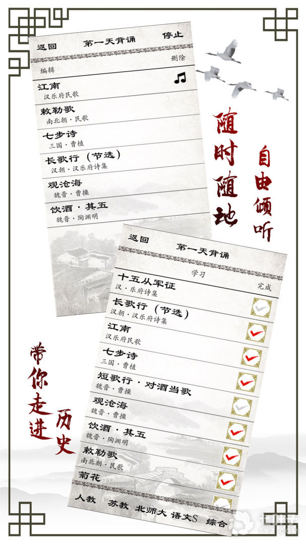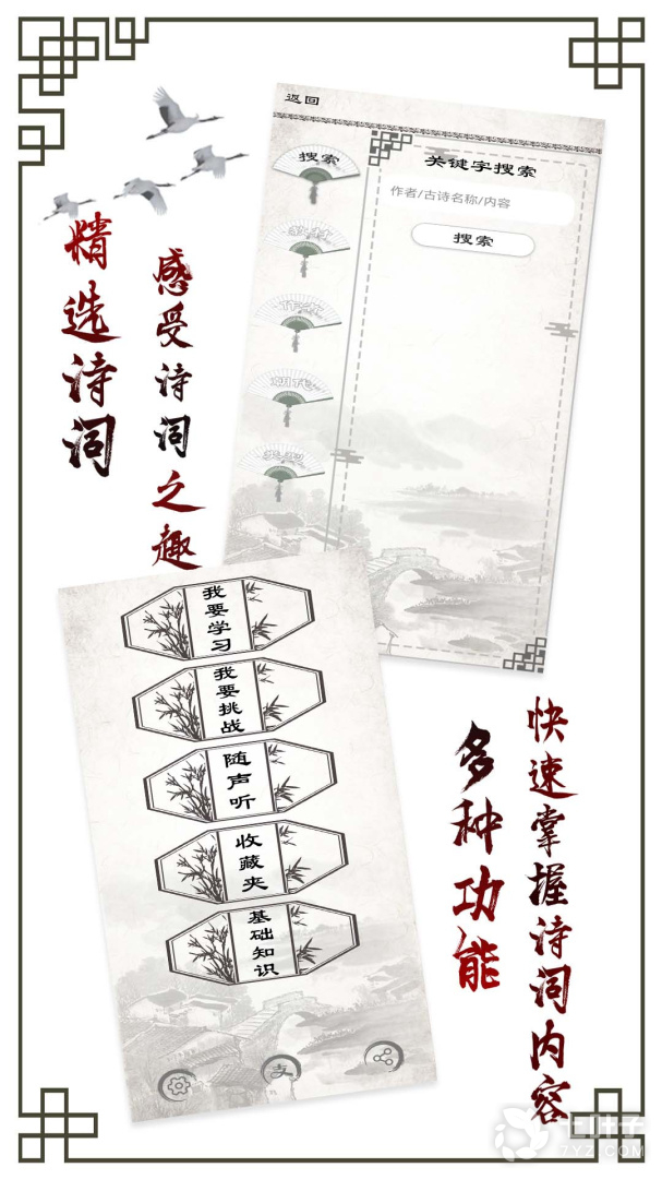 2、操作简便易懂,没有任何时间和地点的限制,用户可以通过这款软件,更好地学习古诗词的知识,并在理解的基础上加以记忆