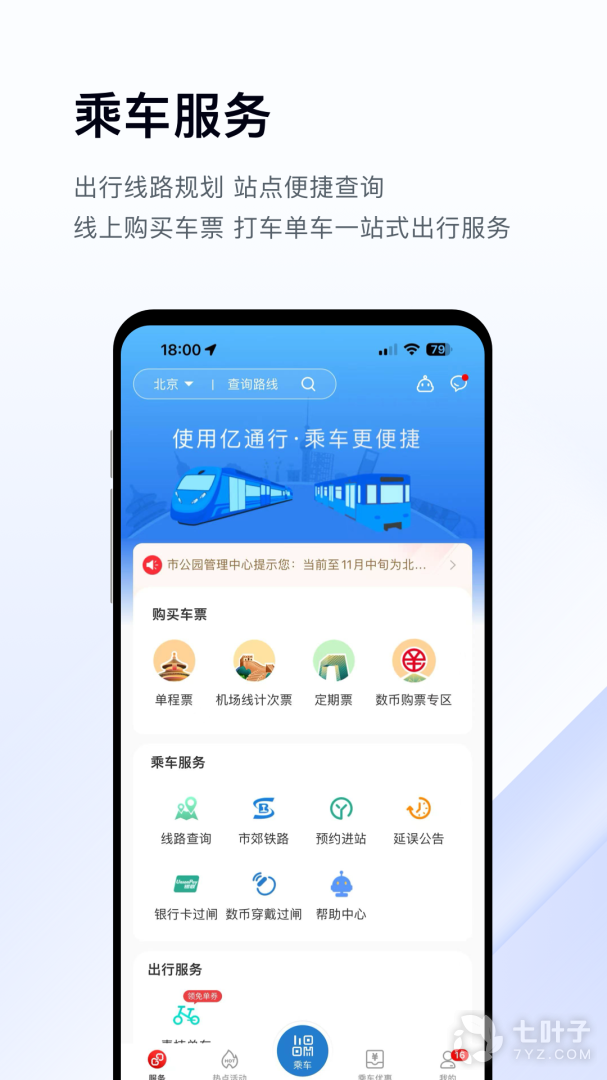 5、三大功能:在线购票、扫码进/出站、路线查询