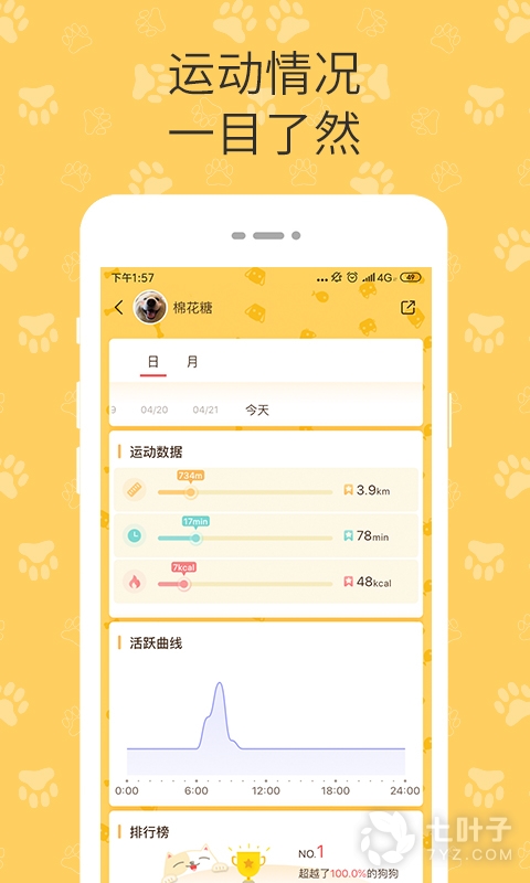 记录狗狗每日和每月的运动时长、运动距离及消耗热量,开启更健康科学的养宠生活。