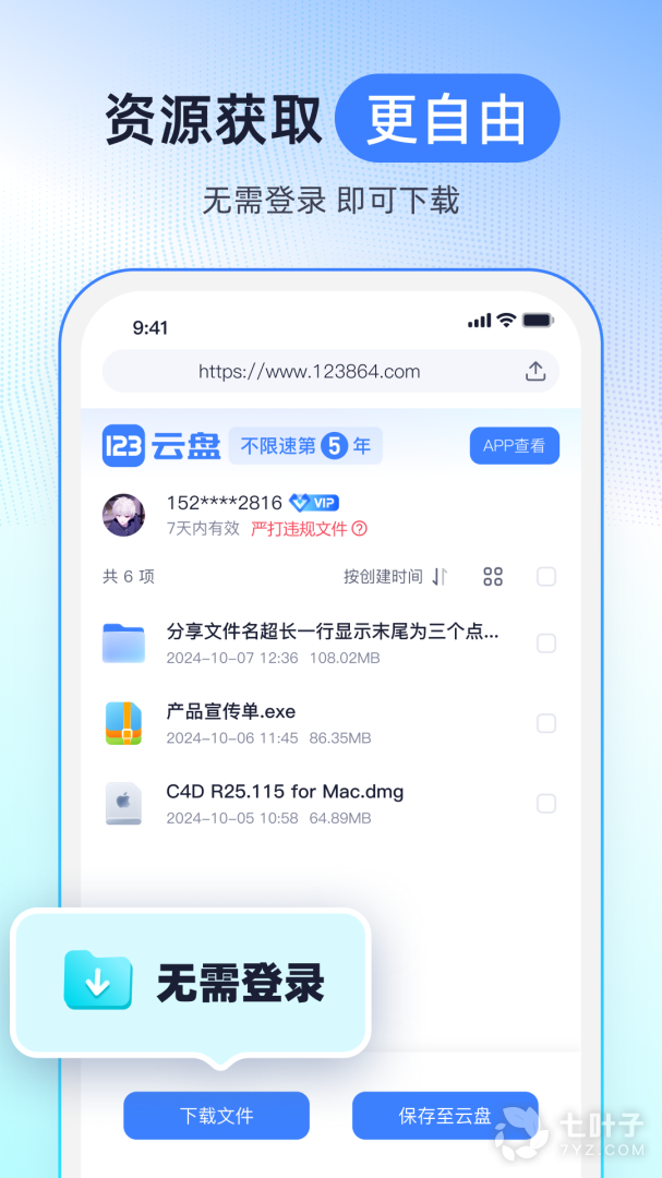 5、云盘,网盘工具,提供手机端文件传输保存下载功能,传输速度快,空间充足,能满足您的云存储文件管理需求。123云盘提供免费存储空间,资源存储足够用,需要一款手机端云盘存储工具的朋友们可以下载使用哦