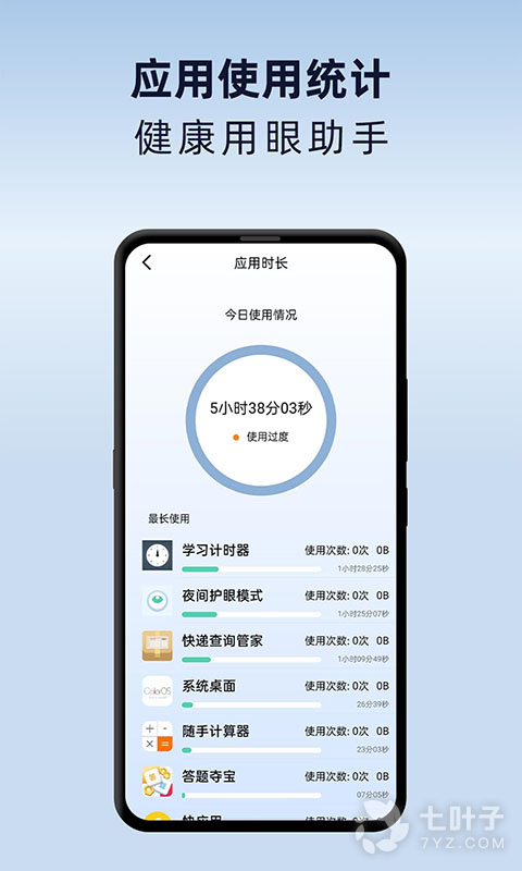 -手机软件使用时长统计,正常使用/过度使用/重度使用,帮助您健康科学用眼;