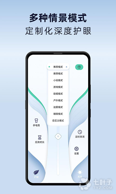 -支持小说模式、游戏模式、助眠模式、户外模式、迷雾模式等多情景定制化护眼模式;