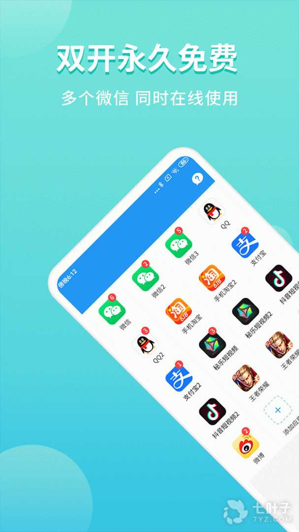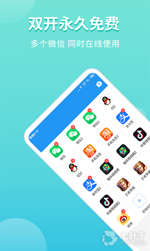 1、微分身双开下载,提供给你这款免费的双开应用工具,版本会员解锁,更多的双开功能免费使用,软件支持多款APP,点击即可十分流畅不封号的应用双开,那么需要的用户下载安装吧