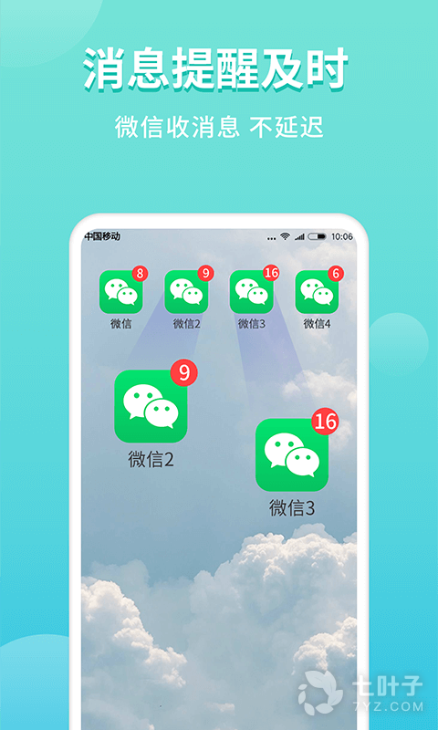5、提供了消息提醒功能,分身应用也会红点标记接收的新消息
