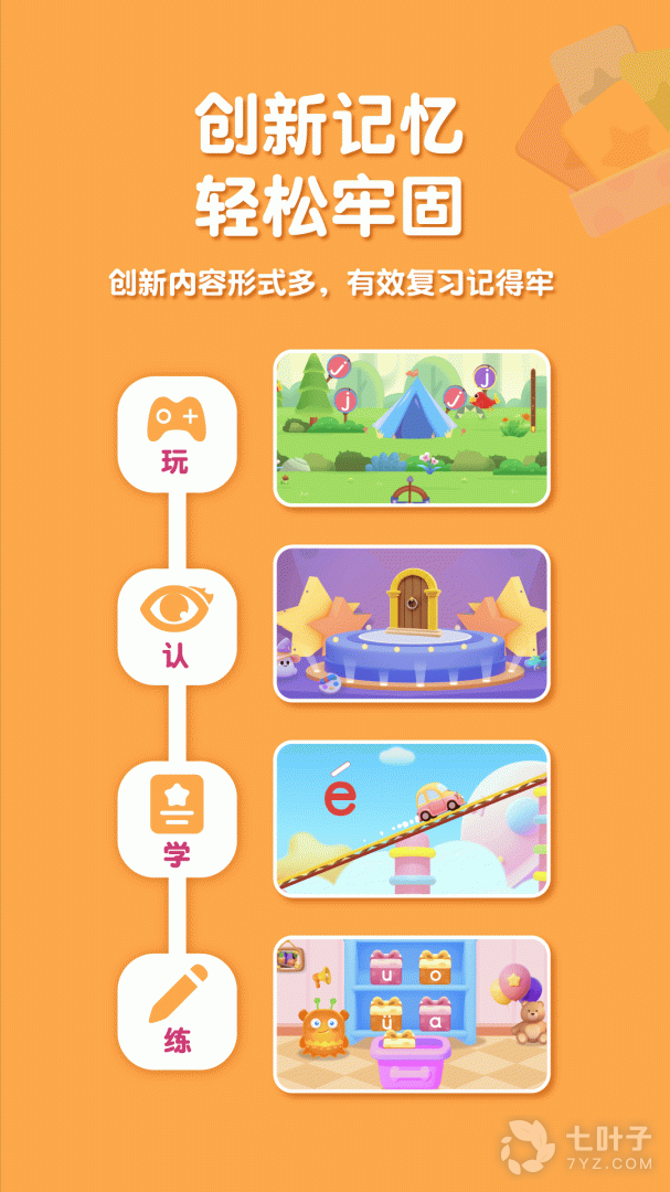 5、拼音游戏:多种拼音游戏,包括打地鼠学拼音、连一连学拼音、翻翻乐学拼音等拼音游戏。
