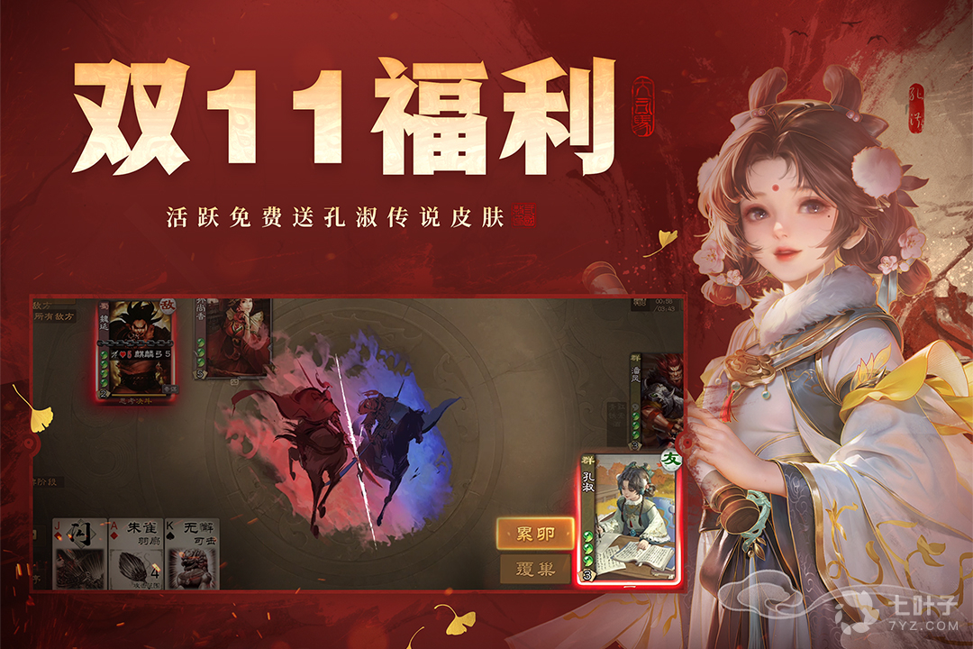 1、双十一折扣来袭, 超多福利上新,免费送全新孔淑传说皮肤!