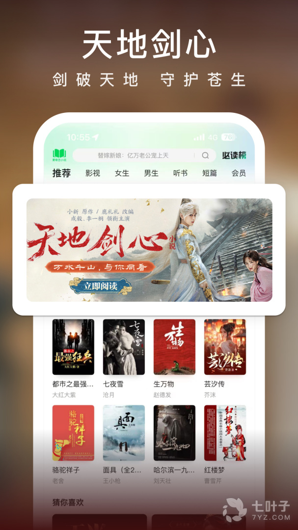 5、用户在这款爱奇艺小说里面可以搜索自己喜欢的小说并开始追更,具有强大的搜索引擎,支持多个榜单的推荐,文字的阅读以及听书等功能,各位可以根据自己的需求来看书,并且该软件阅读模式舒适,无弹窗广告