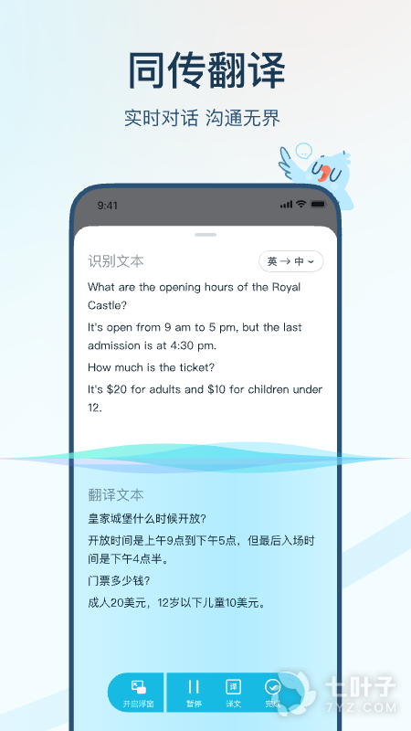 拍照翻译:强大的OCR摄像头取词和拍照翻译功能,一拍即译,无需手动输入便可快速翻译英语、日语等多种语言,满足出国翻译、旅行翻译、旅游购物翻译、英语学习翻译等需求。