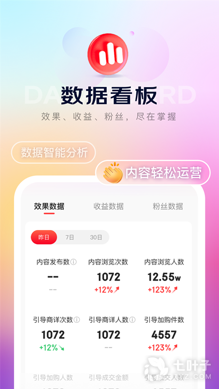 1、内容数据一手掌握,内容效果数据,分析成长路径,内容收益数据,激励创作热情