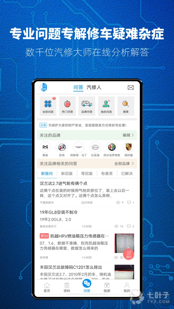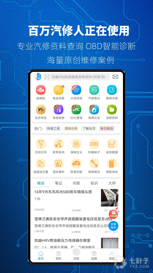 1、汽修宝典最新版是专为广大修车师傅制作,软件拥有查资料,问问题,学汽修等诸多功能,可以帮助用户更好的学习交流,更好的提升自己修车技术