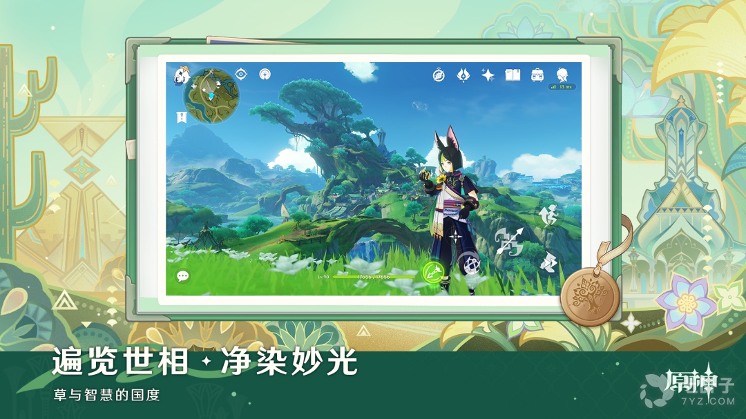 世界由风、雷、水、火、冰、草、岩七大元素构成,拥有「神之眼」的角色能引导元素之力用于战斗和探险。