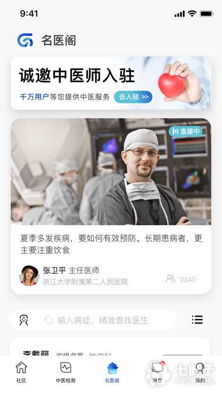 4、【名医阁】搜索优化,输入病症精准查找医生