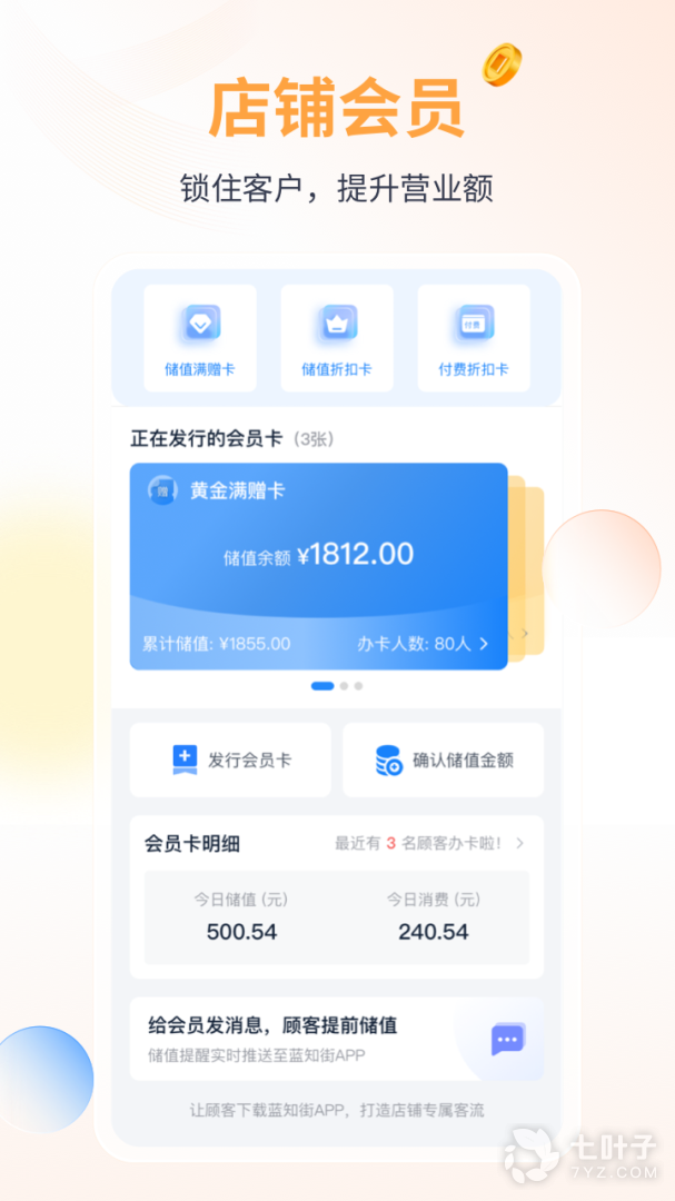 蓝知app涵盖了多个店铺管理功能,为商家提供更加便捷的管理服务,可以在手机上看到店铺的营收情况,同时蓝知app还提供了多种收款服务,可以在手机上随时随地的管理账单,后期核对账单也比较方便,功能特别实用,节省管理的成本,同时还可以为店铺推出一些营销方案,吸引更多的人气