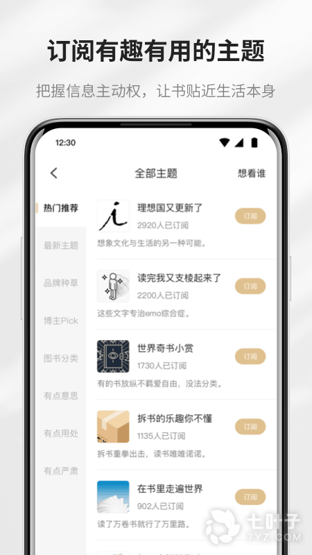 1、订阅有趣有用的主题,把握信息主动权,让书贴近生活本身。