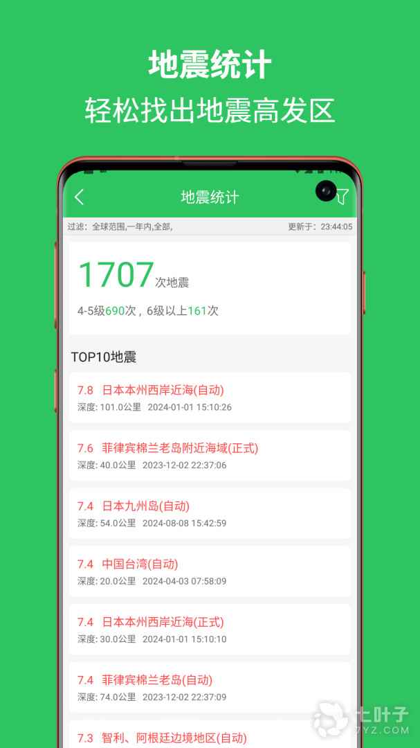 2、震资料是每天实时更新的,有多重查看模式,软件是绿色的无需安装即可使用