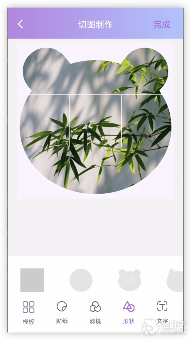 3、支持17种常用形状裁剪,10+边框素材以及12种滤镜特效