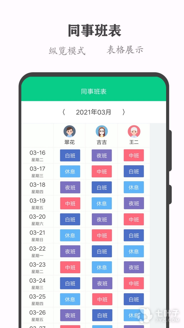 3、轮班日历APP是专门倒班、轮班人群专门设计的专属日历班表APP。拥有智能排班,周期排班,能够根据轮班顺序自动生成班表,还拥有同事管理,使其联系更方便,工作更贴心