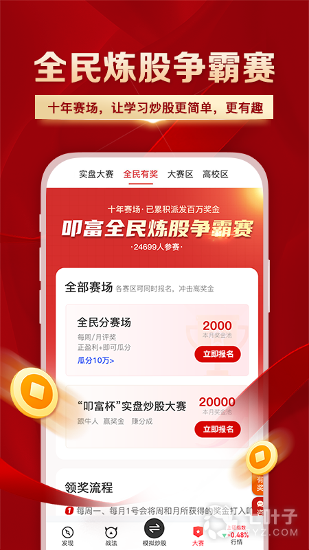 3、叩富赛场:可以免费创建高校大赛、券商大赛和团队大赛。而且每月还有丰富的各类有奖模拟大赛,有趣刺激、每月都有万元大奖等你来拿!让练炒股更有趣,模拟也能赚到真奖金