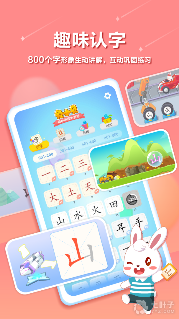 挑选短小精悍,琅琅上口的幼儿古诗,由兔小贝童声朗读诗句,让宝宝在听得同时,一起念出声来,从而锻炼宝宝的记忆力。