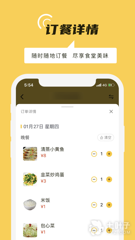1、凭借电子卡能够在线订餐,早中晚餐都能够在此完成订购
