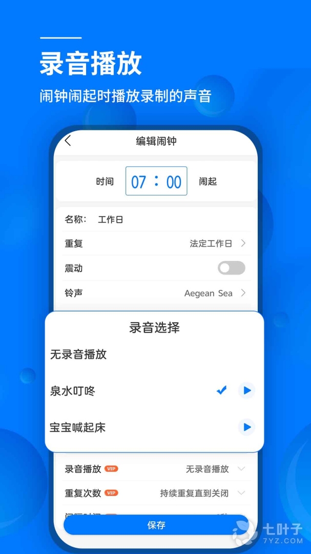 1、语音闹钟是一款十分趣味的手机应用软件,大家可以使用这款软件订制自己的专属闹钟,用不一样的语音提醒你起床哟