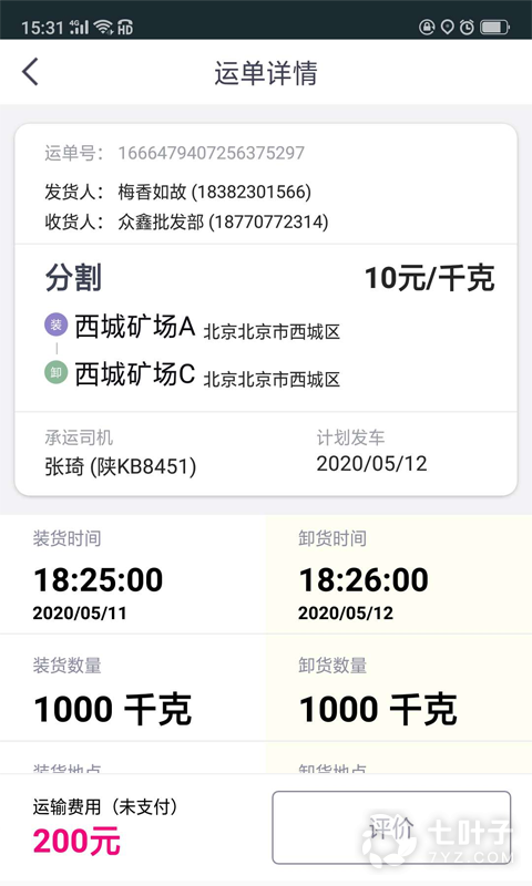 3、货运过程全部环节在平台上都有记录,装车时间、卸货时间等