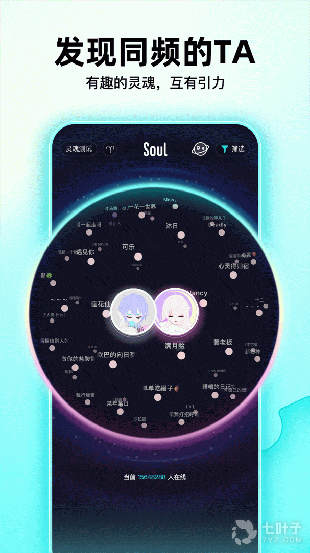 《soul》是一款深受年轻人喜爱的社交APP,用户通过完成30秒的“灵魂鉴定”就能找到与自己兴趣相投的同龄人,自由表达自己和认知世界,建立属于自己的“社交元宇宙”。