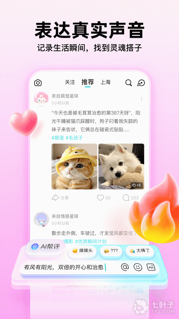 一亿年轻人在此敞开心扉,分享生活中无处诉说的小想法,记录每件有趣的小事,展示自己的兴趣。