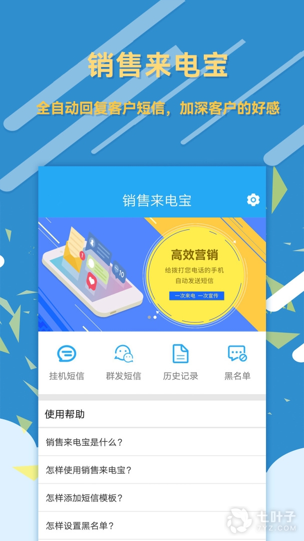 3、销售来电宝是一款销售助手软件。软件专为销售行业打造,能够及时的显示来电信息,未接来点未能回复,软件也会进行自动回复,能够有效的维护和客户之间的关系,非常实用